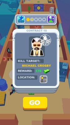 1、游戏中的关卡非常的丰富,玩家需要不断的在关卡中暗杀角色,获得宝石奖励。