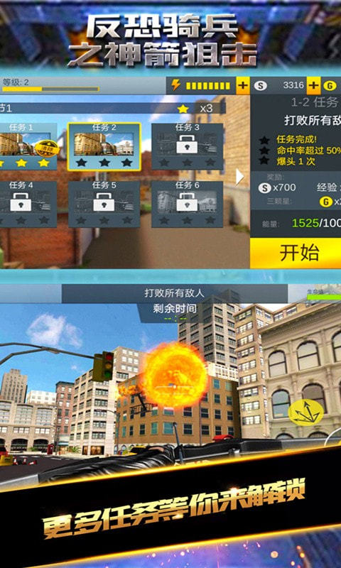 2、各种各样的任务等待着玩家的完成,完成任务获得奖励解锁出更多的武器。
