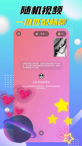 《星派交友》是一款非常实用的在线交友软件,在这款软件中有着十分丰富的社交服务,可以帮助用户更好的找寻到异性进行交流,只需要一键点击就可以自由地进行匹配,能够找寻到最符合自己喜好的异性,软件中的聊天互动玩法非常的精彩,并且还可以进行有趣的线下互动。