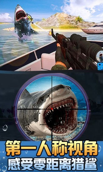 1、随时都可以开始自己的狩猎之旅,不断地消灭场景中各种各样的鲨鱼。