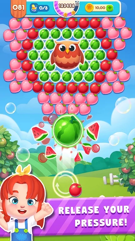1、玩深度海量的游戏关卡挑战,家可以将那些水果变成泡泡,经典的删除游戏,挑战低。