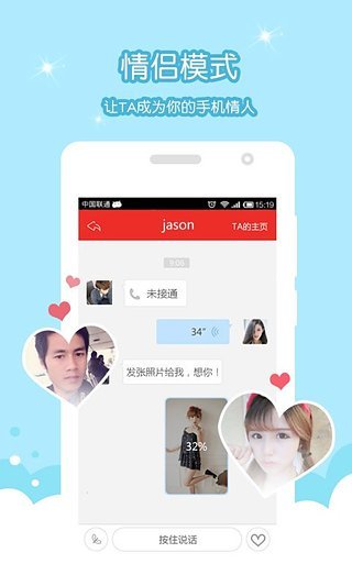 1.情侣模式开启情侣模式,随手发语音短信,累了就打电话,天天“相聚”,让TA成为你的手机情人!