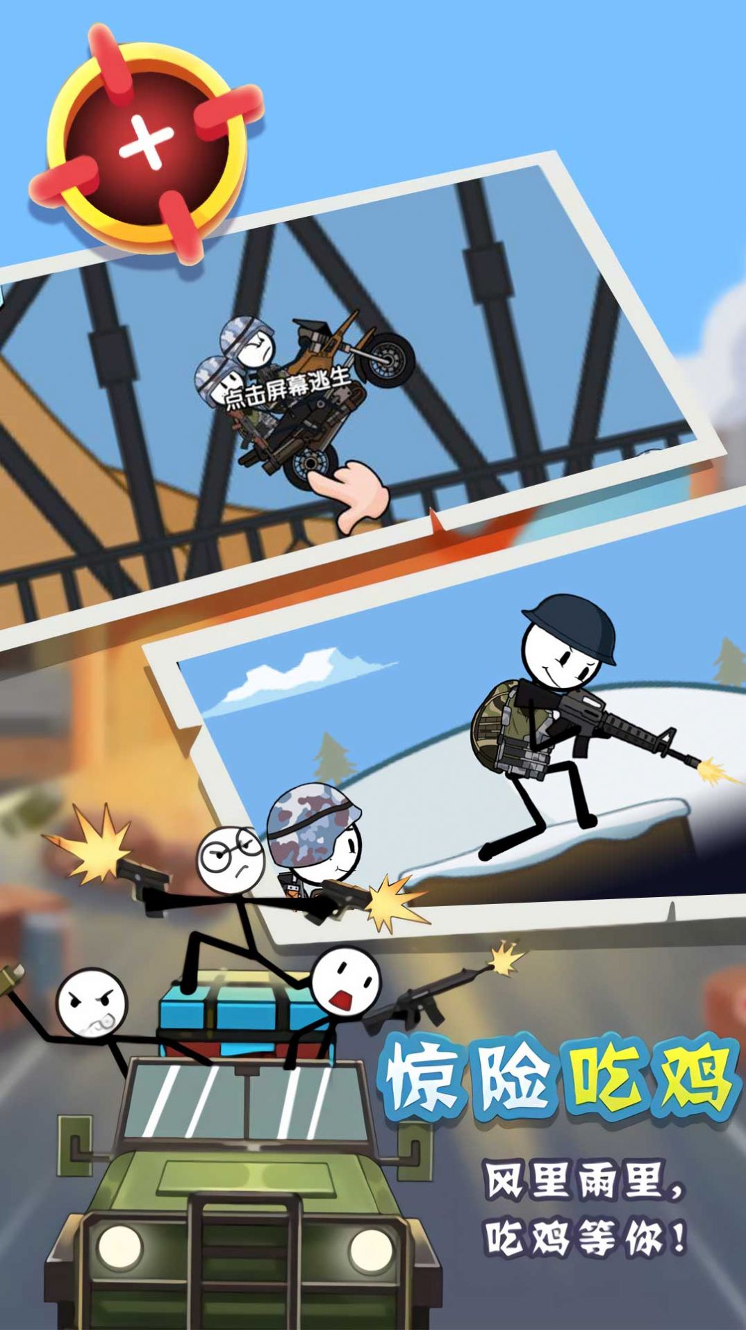 《火柴人吃鸡战争》这是一个神奇而有趣火柴人吃鸡的比赛,在这里,你必须控制许多火柴人士兵相互战斗,这种目标非常巧妙,很多竞争战略都在等着你解锁。你是真正的射击之王,可以做出这些挑战和决定。完美地实现目标会给你带来快乐,游戏非常的有趣,感兴趣的小伙伴快来下载体验一下吧。