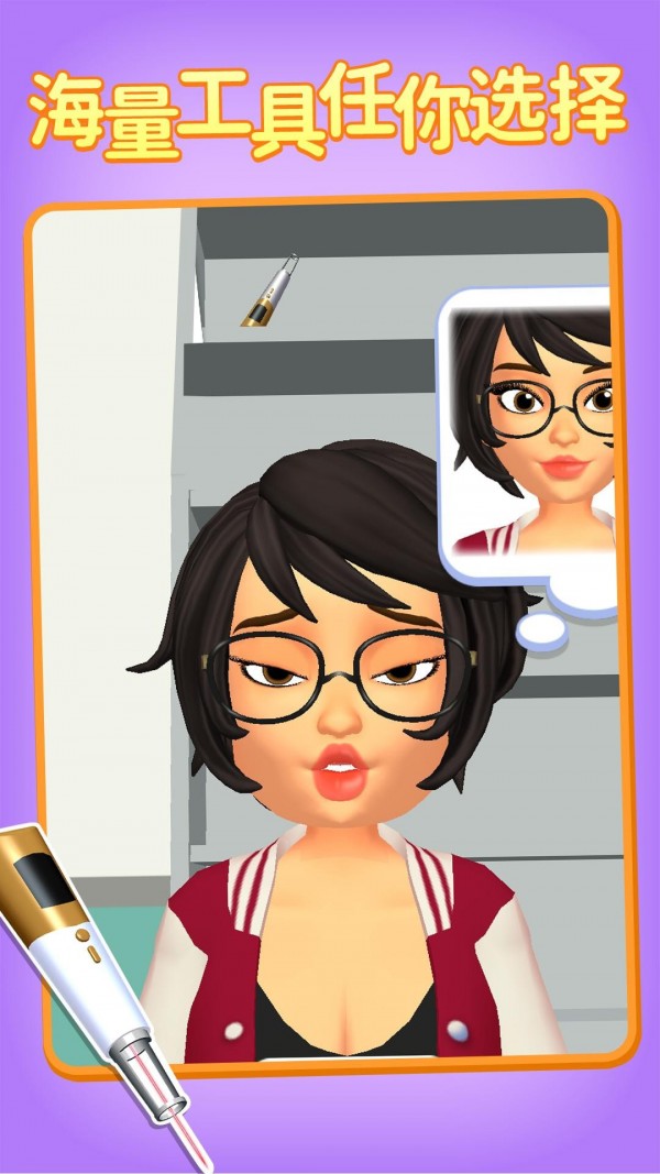 1、与其他整形手游不同的是,酷脸整形大师采用了创新的手术操作方式。玩家需要通过对屏幕进行滑动、捏合和旋转等手势来完成整形手术。这种直观而独特的操作方式,让玩家能够更加自由地操控手术工具,增加了手术的真实感和乐趣。