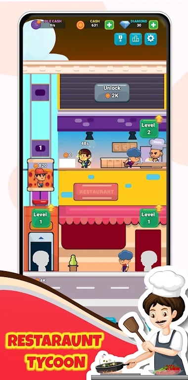 1、闲置经理餐厅大亨游戏拥有卡通风格的画面设计,色彩鲜艳,形象生动,让玩家们眼前一亮。
