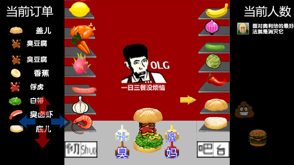 2、这里拥有丰富多样的奇葩食材,从臭豆腐到腐乳,挑战你的味蕾极限。玩家可以自由搭配,创造出独一无二的汉堡。