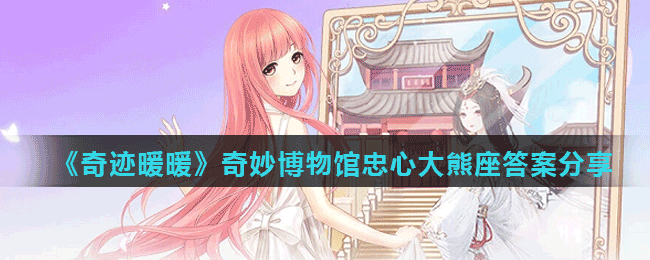 在奇迹暖暖游戏当中,关于忠心大熊座的题目可是困扰了的玩家小姐妹们,大家都在互相讨论着忠心大熊座题目答案是什么奇妙博物馆忠心大熊座又该选什么呢,下面小编就为大家具体分享一下《奇迹暖暖》奇妙博物馆忠心大熊座答案。