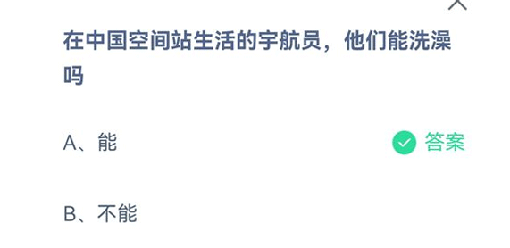在中国空间站生活的宇航员他们能洗澡吗?支付宝蚂蚁庄园7月17日每日一题问题就是这,其实这一题看起来很难,其实非常的简单,不需要用户有太多的航空航天知识就可以轻松的回答上来,当然如果你实在不清楚的话也是没有关系的,今天小编就为大家带来支付宝蚂蚁庄园7月17日每日一题答案,有需要的小伙伴就来看看吧。