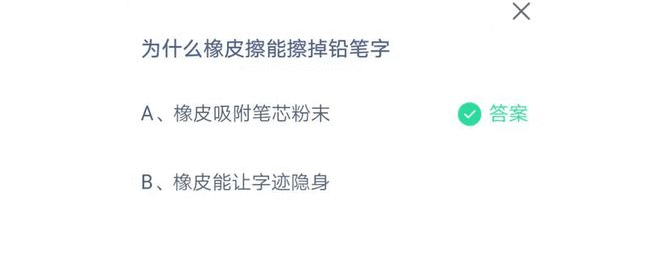 为什么橡皮擦能擦掉铅笔字?这是蚂蚁庄园7月18日每日一题的问题,这个问题我相信许多的小伙伴曾经都有过疑问,那么具体的原理是什么的呢?今天小编就为大家带来支付宝蚂蚁庄园7月18日每日一题答案,只要能够成功的回答上来就可以获得180g的饲料奖,感兴趣的小伙伴赶紧来看看吧。