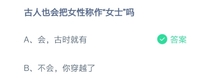 古人也会把女性称作“女士"吗?这是蚂蚁庄园7月20日每日一题的问题,只要能够成功的回答出这个问题,就可以获得蚂蚁庄园180g的饲料奖励,许多的小伙伴不是很清楚这个问题的具体答案。今天小编就为大家带来支付宝蚂蚁庄园7月20日每日一题答案,感兴趣的小伙伴赶紧来看看吧。