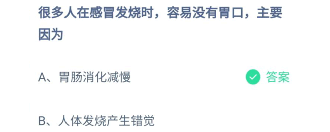 很多人在感冒发烧时,容易没有胃口,主要因为?这是蚂蚁庄园7月22日每日一题的问题,只要能够成功的回答出这个问题,就可以获得蚂蚁庄园180g的饲料奖励,许多的小伙伴不是很清楚这个问题的具体答案。今天小编就为大家带来支付宝蚂蚁庄园7月22日每日一题答案,感兴趣的小伙伴赶紧来看看吧。