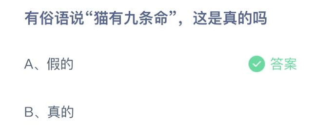 有俗语说“猫有九条命”,这是真的吗?那么今天的题目就是考考大家这个问题,相信许多小伙伴都曾经想过这个问题,下面小编为大家带来支付宝蚂蚁庄园2021年7月26日每日一题答案,只要回答正确就可以获得180g的饲料奖励,感兴趣的小伙伴一起来看看吧。