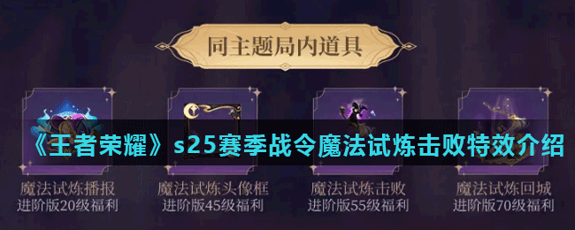 王者荣耀s25赛季战令魔法试炼击败特效怎么样,全新的s25赛季当中在不同的进阶版等级当中也是为各位玩家小伙伴们带来很多奖励的,特别是推出新皮肤所附带的同主题局内道具,下面小编就为大家带来《王者荣耀》s25赛季战令魔法试炼击败特效介绍。