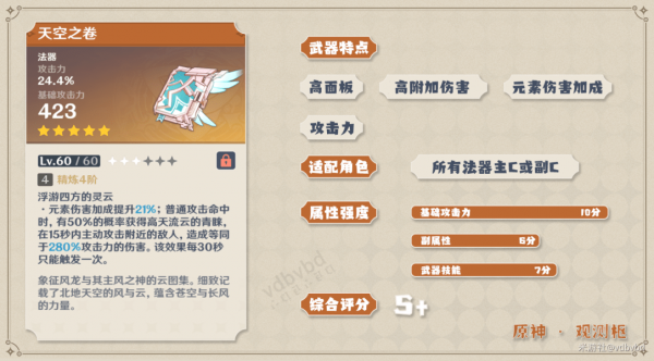 3、对于攻击频率频繁的法师角色来说可以说毕业武器了,只是对于圣遗物的搭配需要上点心。