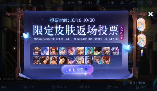 王者荣耀六周年庆投票活动即将开启了本次投票规则整体和往年基本上是一样的共计有着五款限定皮肤不过是需要通过各位召唤师小伙伴一同进行投票从而决定的,那么王者六周年庆限定皮肤返场活动具体什么时候才开始呢,今天71游戏网小编那就为大家带来《王者荣耀》六周年庆投票活动时间介绍分享。