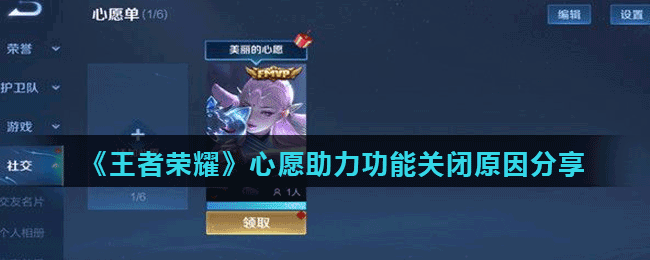 以上就是小编整理的关于《王者荣耀》心愿助力功能关闭原因分享的全部内容,更多游戏攻略请持续关注71游戏网!