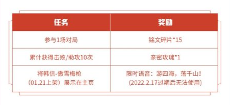 ps:首周拥有韩信-傲雪梅枪还可免费领取专属个性动作“傲雪凌霜”和韩信景品周边商城礼包