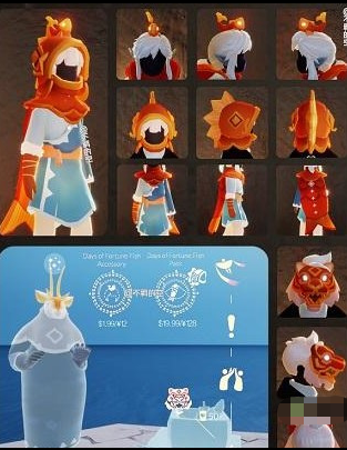 幸运之鱼头饰、幸运之鱼套装,头饰单卖12,套装包含斗篷和头套,打包一起买的话是128;