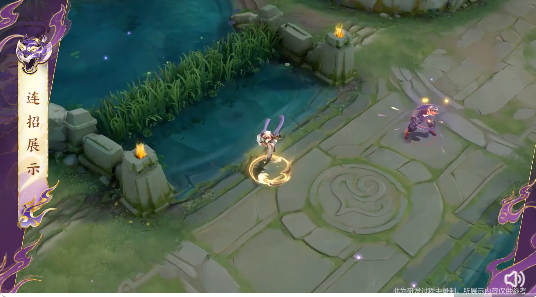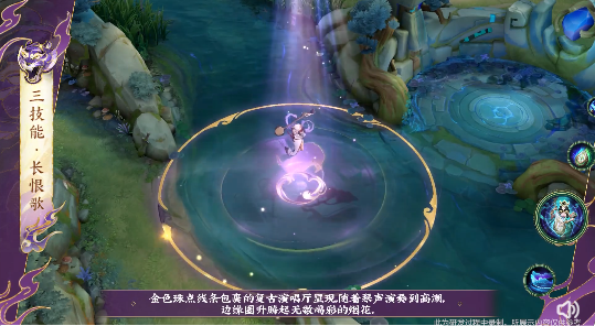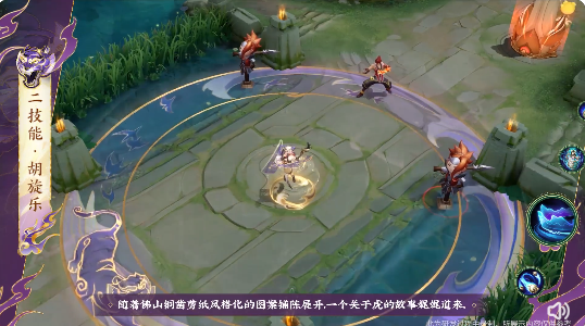 以蕈紫色为主色调,一技能琴弦拨动,虎曲中的音符化作虎灵咆哮而来;