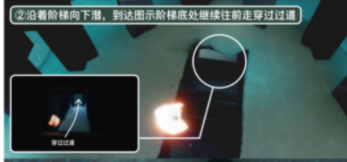 2、沿着阶梯向下2潜,到达图示阶梯底处继续往前穿过过道;