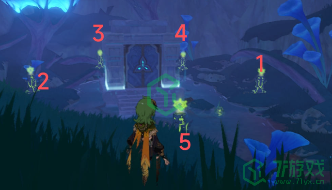 这个草元素碑下方有一个符号,分别是白色和黄色两种颜色,这时候用草元素跟着黄色的符号打就可以了。