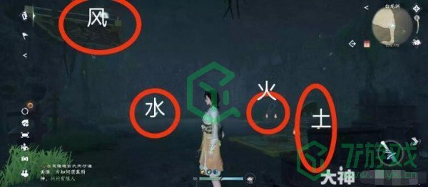 3、进入后能看到每个柱子元素标志是不一样的,使用江湖技能解锁机关就可以了。