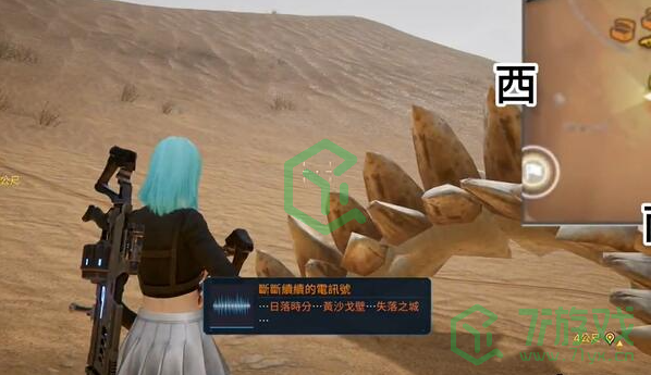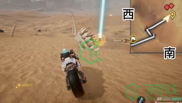1、玩家需要跟随指引,来到沙海中间位置,也就是下图位置,能在前方发现骸骨群。