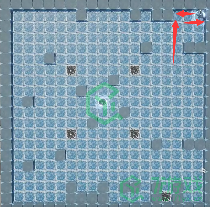 1、进入关卡后,绕过右下角石头直走撞墙,然后移动到最右上角;