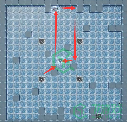 2、接着往左移动两步,往下直走后,再按顺序先左后上走;
