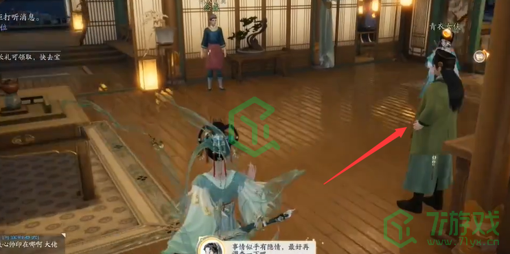 6、与【蒲开宗】对话后,分别找【掌柜】、【青衣女侠】对话;