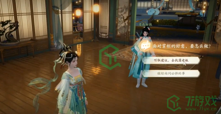 5、下楼的时候找到【掌柜】对话,选择【听取建议,去找蒲老板】;