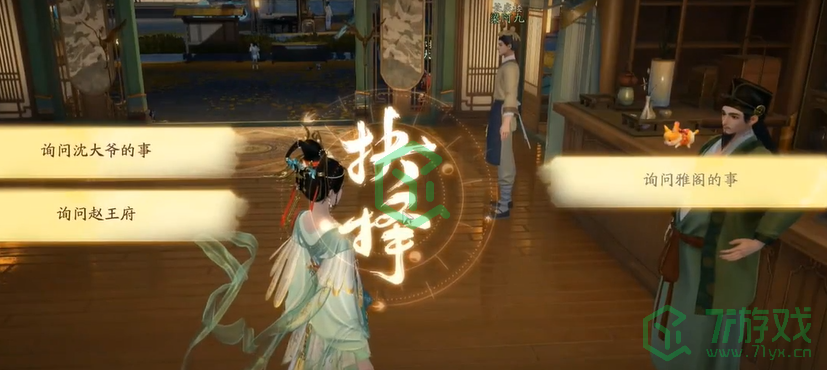 1、解锁杨康第一章任务后,在如图所示位置观察面前的人,选择【尹志平】、【卷宗的下落】、【投其所好】;