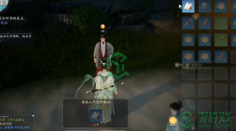 8、与【青衣童子】对话,在沿途撒上诱食;
