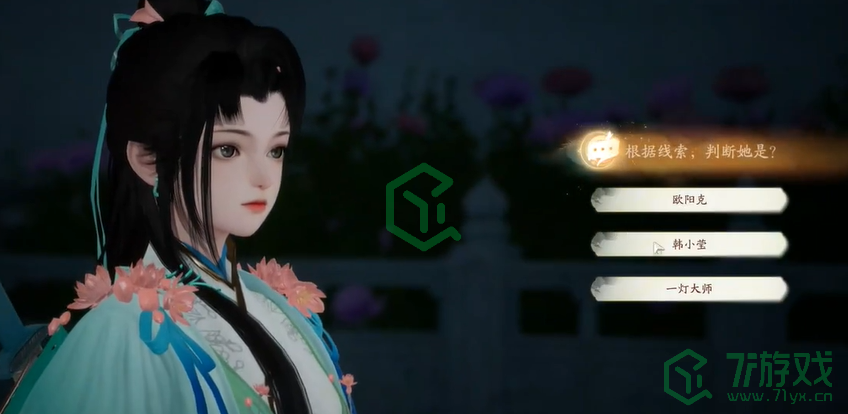 2、去旁边找青衣女子,选择【韩小莹】,进行战斗并将其击败。