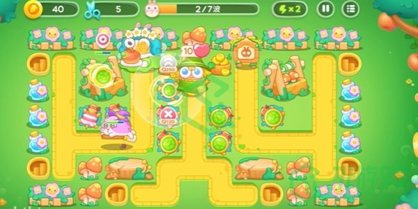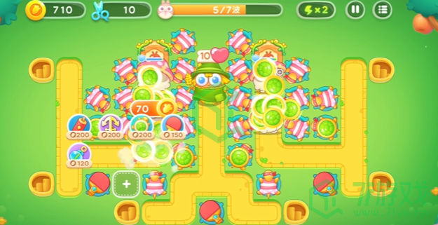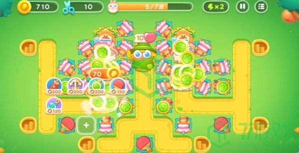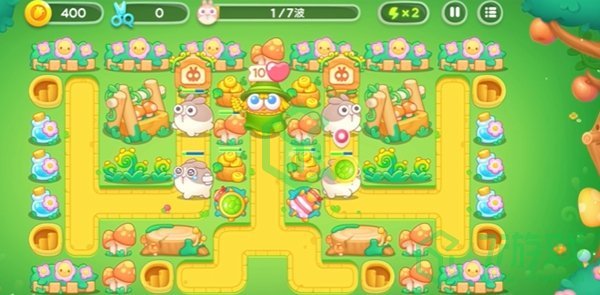 3、等有金币的时候,可在地图两侧放置乌龟并升级,增加炮塔输出火力。