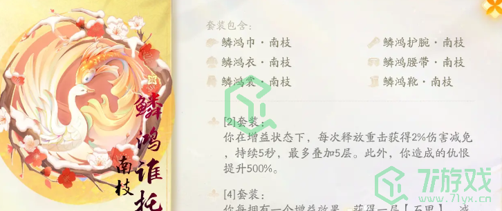 注:目前游戏中只有三件装备有套装:觅柳、寻桃、南枝。