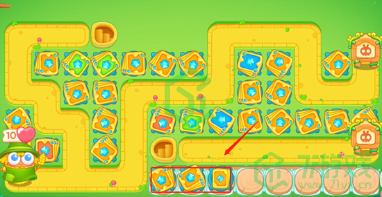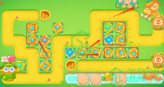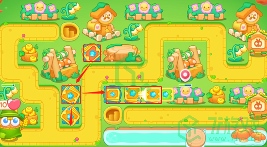 2、然后就是一遍清理路障,一遍建造卡牌并升级,按照如图所示放置卡牌。