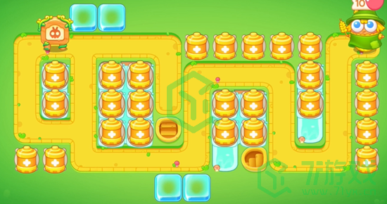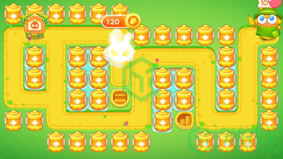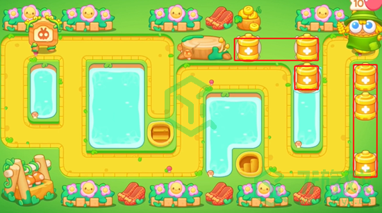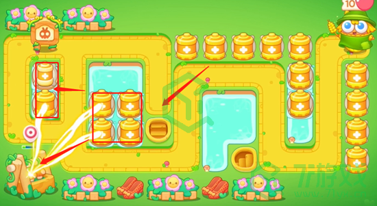 4、最后如图所示放置电机并升到满级,将所有兔子和路障清理后即可顺利通关。