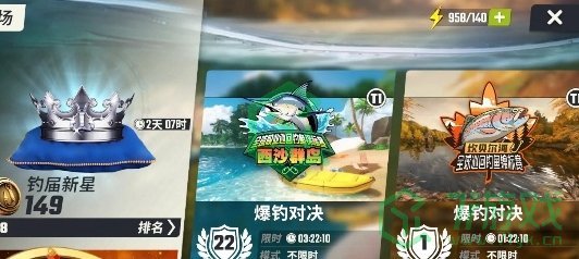 1、开启新地图进入新渔场,右下角送蓝色的杆子和50体力。