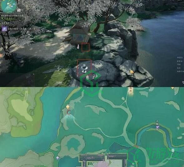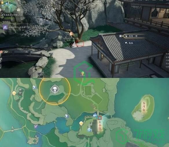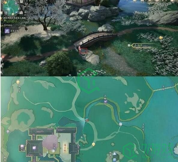 携带上藏宝图15,来到泉水院上方小桥旁的树下挖取即可。