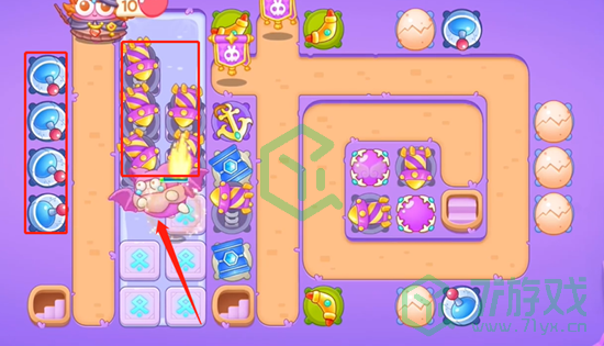 3、利用冰锥的反向攻击和船锚的溅射船锚,能打掉左边的道具,开始放置雷达清理左边的道具。