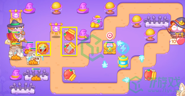 1、开局先在左下角建造一个拳击炮塔,然后在如图所示位置,分别建造一个拳击炮塔,以防漏掉怪物。