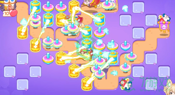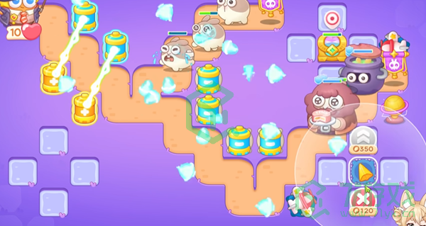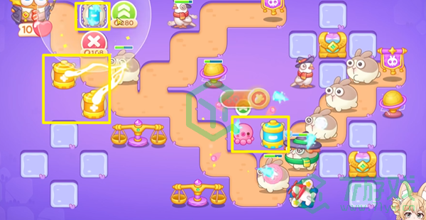 5、最后在如图所示位置建造陀螺炮塔,按照如图所示放置炮塔并全部升到满级,即可顺利通关。