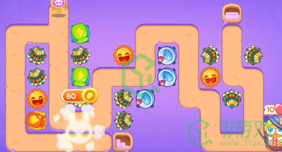 3、优先清理掉左边的道具,再放炮台增加伤害,最后所有道具拿到全清。