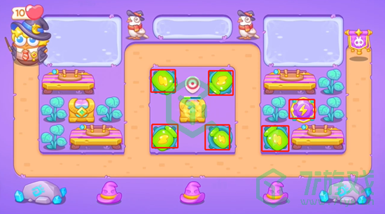 2、宝箱里开出的是水晶,四个角落放足够多的瓶子炮,把剩下的所有道具全部打掉。