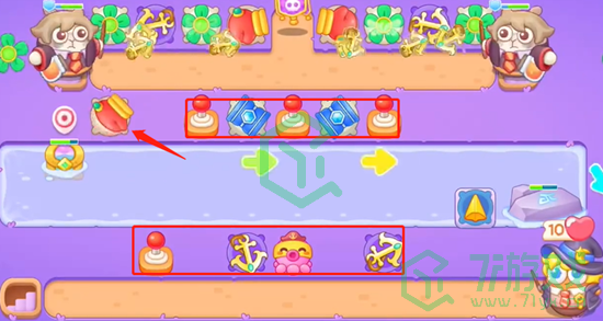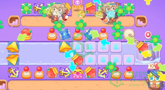 3、下面路线继续放船锚清理道具,下面的宝箱给的是章鱼,将其卖掉继续放摇杆。