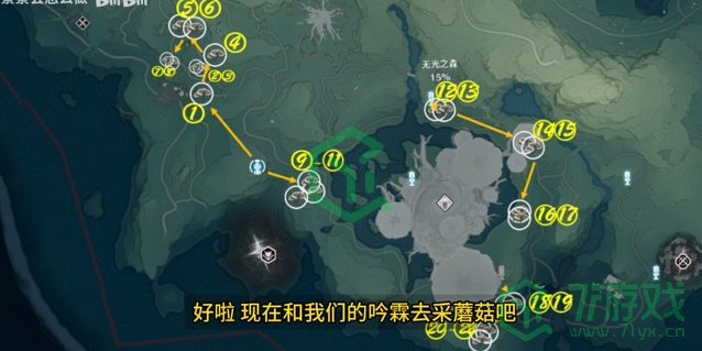 1、先前往如下图所示的无光之森,在这里可以采集到22朵云芝。