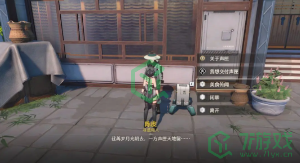 1、在和寻遗商人陈皮对话的时候,选择“美食传闻”可获得切配制作卤汁的配料。