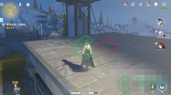 2、传送到下图所示位置与周围的怪物战斗,跟随指引与塔上的工程师对话,然后进入三个观测站;