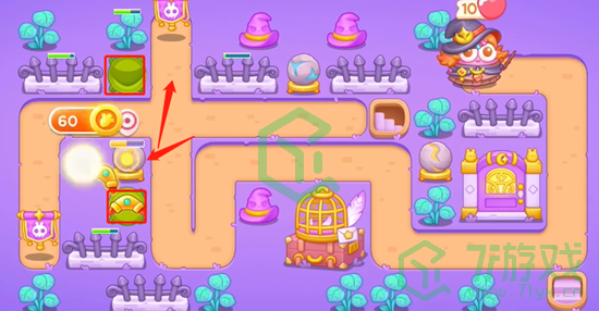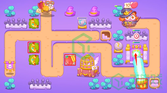 4、最后把场上剩余的道具全部打掉拿到全清,继续沿线放置更多的炮台,增加线上的伤害能力即可。